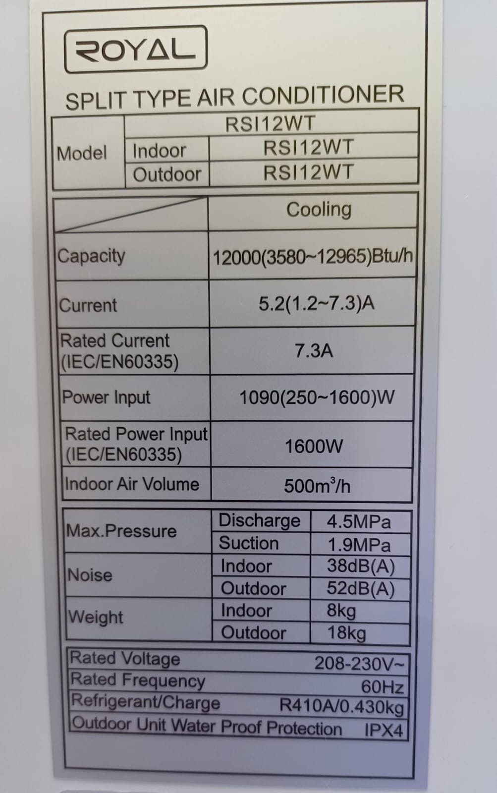 AIRE SPLIT 12K INVERTER ROYAL - Nour Zona Libre