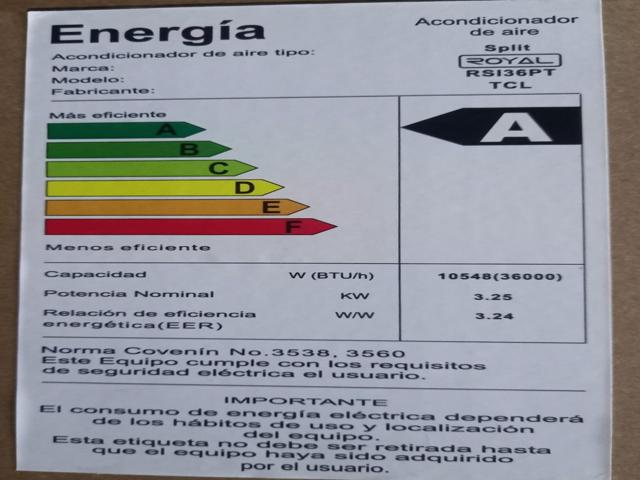 Aire split tipo techo de 36,000btu/ voltage 208- 230v, frecuencia 60Hz, refrigerante R410 (2300g, protección eléctrica IPX4, corriente actual 19 amperios, corriente nominal 20 amperios, voltage actual 3260w, voltage máximo 4400w, capacidad de enfriamiento por m3 1740m3/h, presión máxima de descarga 4.2MPa, máxima presión de succión 1.5MPa, ruido del evaporador 50 decibeles, ruido del compresor 50 decibeles, eer 3.23, MEDIDAS DE EVAPORADOR SI CAJA 24 X 29 X 127.5 CM.