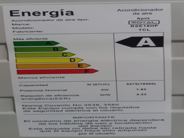 Aire split 18,000btu/h, corrientes 7.73A, corrientes nominal 12.5A, entrada de alimentación 1633 watts, entrada de potencia 2500 watts, volumen de aires metro cuadrado 820 m3/h, máxima presión de descarga 4.5MPa, máxima presión de succión 1.9MPa, ruido del motor 52db, ruido del evaporador 48dB, voltage 208-230v, frecuencia 60Hz, refrigerante R410A (0.760kg, protección contra agua IPX4, EERR 3.23.