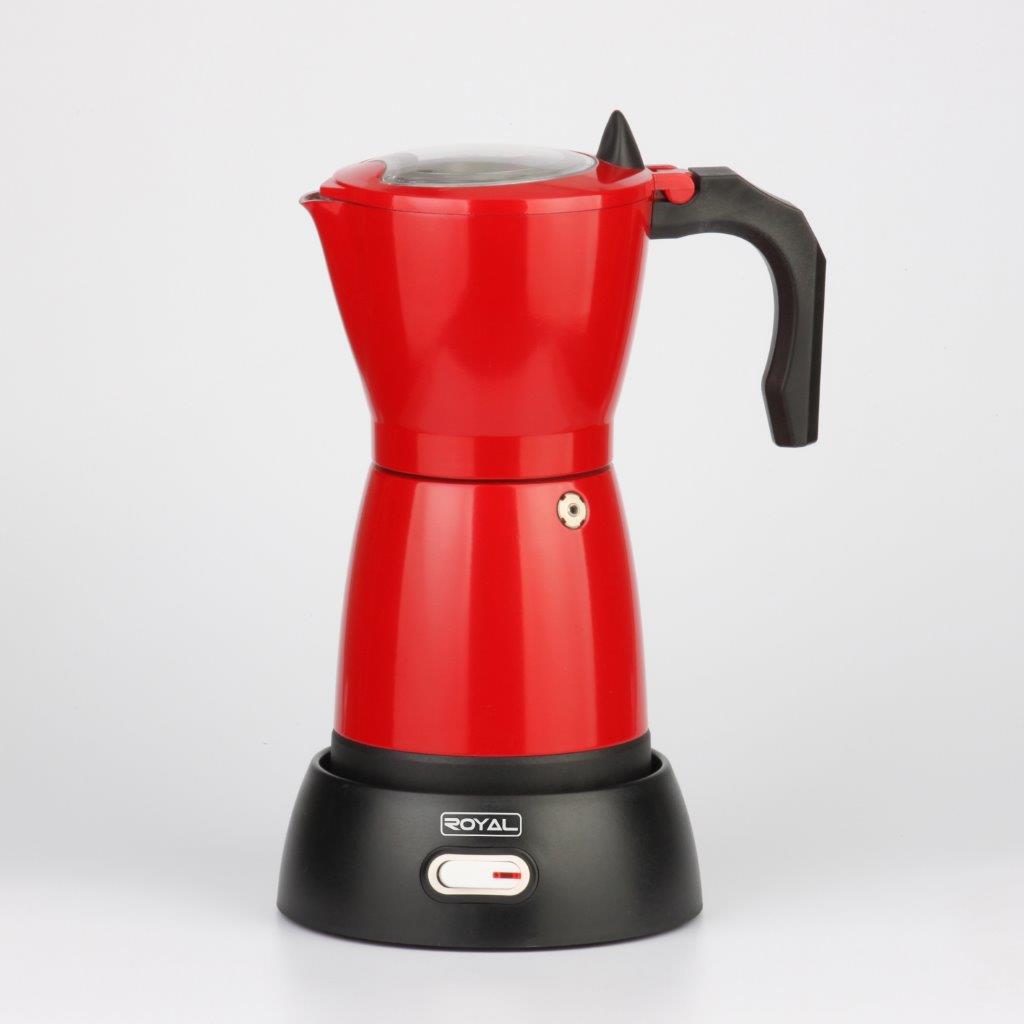 Cafetera 6 tazas, botón de encendido y apagado con luz, estructura de aluminio de color rojo, consumo 550w, voltage 120v-60Hz / jarra libre de cable.