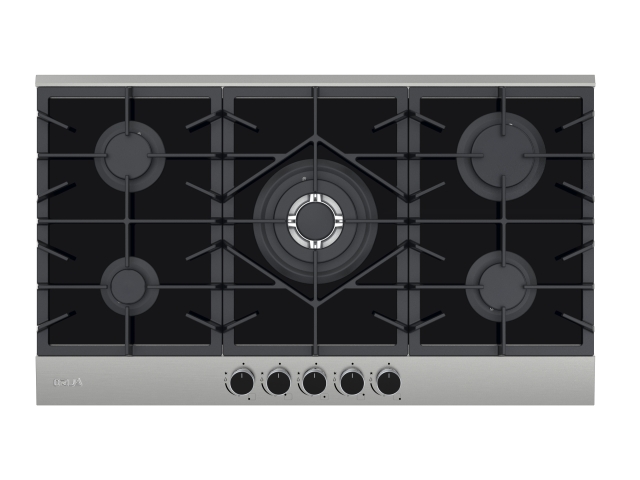 Cristal templado negro, encendido eléctrico, 5 válvulas de seguridad, 5 boquillas de gas propano, parrillas de hierro colado, perillas Metalicas, 1 porta wok, 5 hornillas de cocción, 1 hornilla triple corona, 2 hornilla semi rápido, 1 hornilla rápida, 1 hornilla auxiliar, panel de espejo decorativa, voltage 110-240v, frecuencia 50-60Hz, 1 kit de accesorios para conversión: 5 boquillas y un codo para gas natural.
