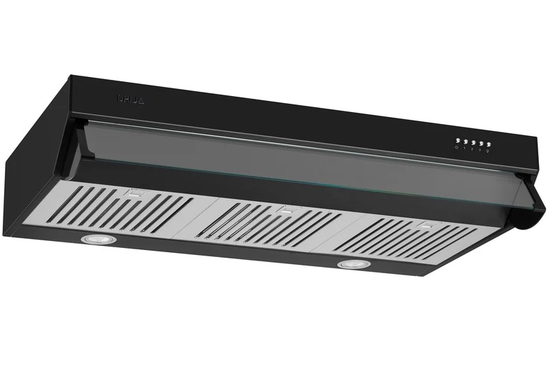 Colores disponibles: acero inoxidable, blanca, negra, el flujo de aire es hasta 220m3/h, iluminación LED 3 velocidades con botón, pulsador, 1 Pieza de filtro de carbón, 2 filtros de aluminio lavables, potencia del motor 130Watts, alimentación 110V-120V – 60 Hz.