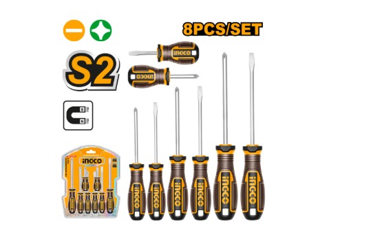 JUEGO DE DESTORNILLADORES INGCO DE 8 PIEZAS