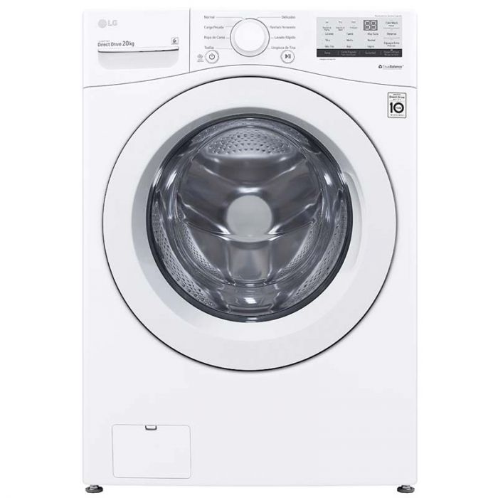Lavadora de carga frontal de 20 kg, motor inverter, diagnostico inteligente, panel de control tactil, puerta de vidrio templado, seguro para niños, programas de lavado 8.