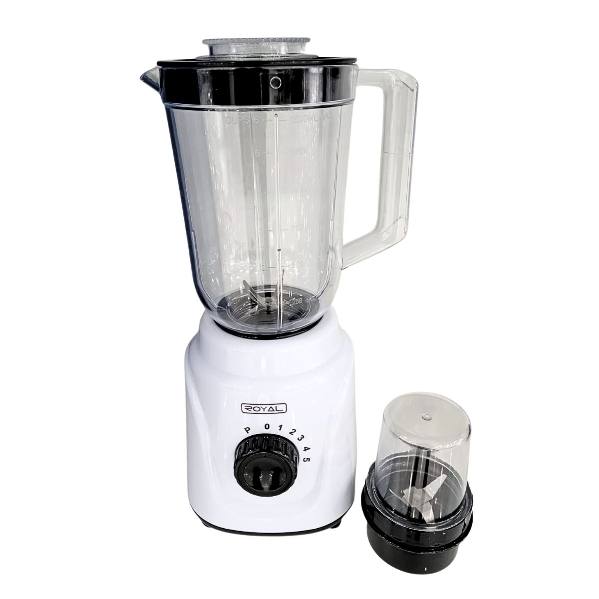 Licuadora 2 en 1 con jarra de plástico de 1.5 litro, 5 velocidades, incluye vaso triturado con su cuchilla, motor de 500 watts, cuchilla de 6 aspas de acero inoxidable, botón de pulso, voltage 110v, frecuencia 50-60Hz.