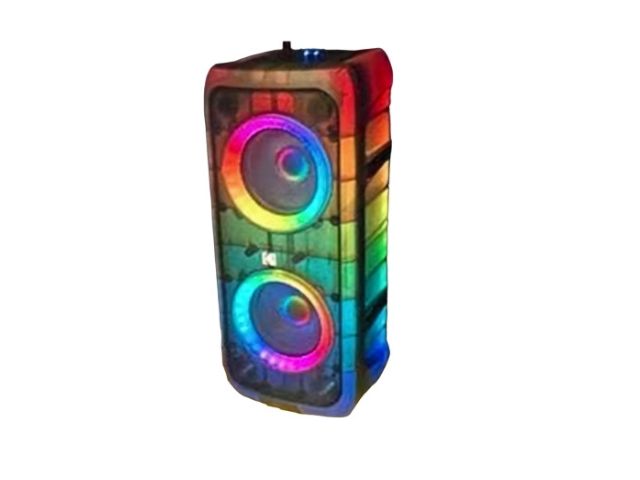 Bocina inalámbrica con sintonizador fm, entrada auxiliar, usb, micro sd, uso discoteca, altavoces doble 6.5”, recargable batería 7.4v/ 3000MAH, salida de 3000w potencia, incluye adaptador y micrófono, agarradera portátil.
