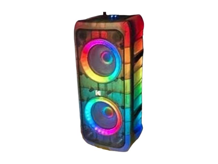 Bocina inalámbrica con sintonizador fm, entrada auxiliar, usb, micro sd, uso discoteca, altavoces doble 8”, recargable batería 7.4v/ 5000MAH, salida de 5000w potencia, incluye adaptador y micrófono, agarradera portátil.