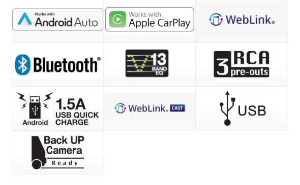 Tecla de acceso rápido y acceso directo para CP&AA, crossover (3 vías) y posición de escucha ajustable, apple carplay y android auto inalámbrico y con cable, bluetooth incorporado, pantalla WVGA de 6,8 pulgadas capacitiva (Multitáctil), entrada para cámara de visión trasera, conexión manos libres para dos teléfonos, reproducción de videos desde dispositivos USB, carga rápida USB para teléfonos inteligentes, 3 pre-salidas (4 V).