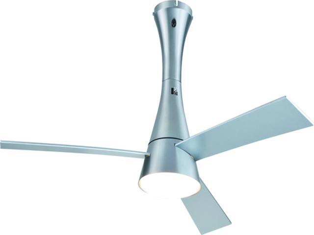 Ventilador de techo de 3 aspas, bulbo contiene 2 lámparas de 40 watts, 3 velocidades, control remoto, reversa, sonido, voltaje 110, frecuencia 60Hz, 65 watts.