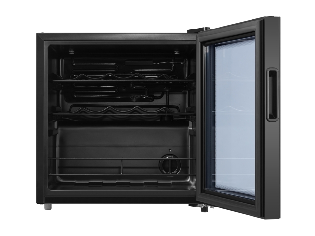 Vinera de mesa de 14 botellas, 1.5 P3( 43 litros, control análogo, 2 estante tipo parrilla para 5 botellas, voltage 115, frecuencia 60hz, 1 amperio, refrigerante r600a (18 gramos, 121kWh/ año, agente espumante ciclopentano, clase climática tropical, puerta reversible.
